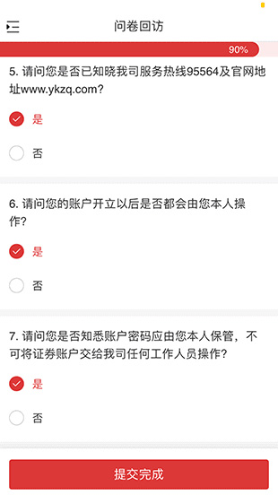 10、進(jìn)入【風(fēng)險測評】頁面,進(jìn)行相應(yīng)的填寫之后,如無問題則點(diǎn)擊【提交完成】。